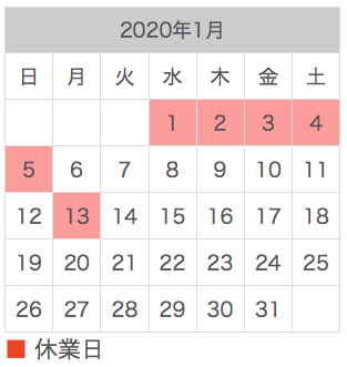 2019/12/27~2020/1/5は休業とさせていただきます。